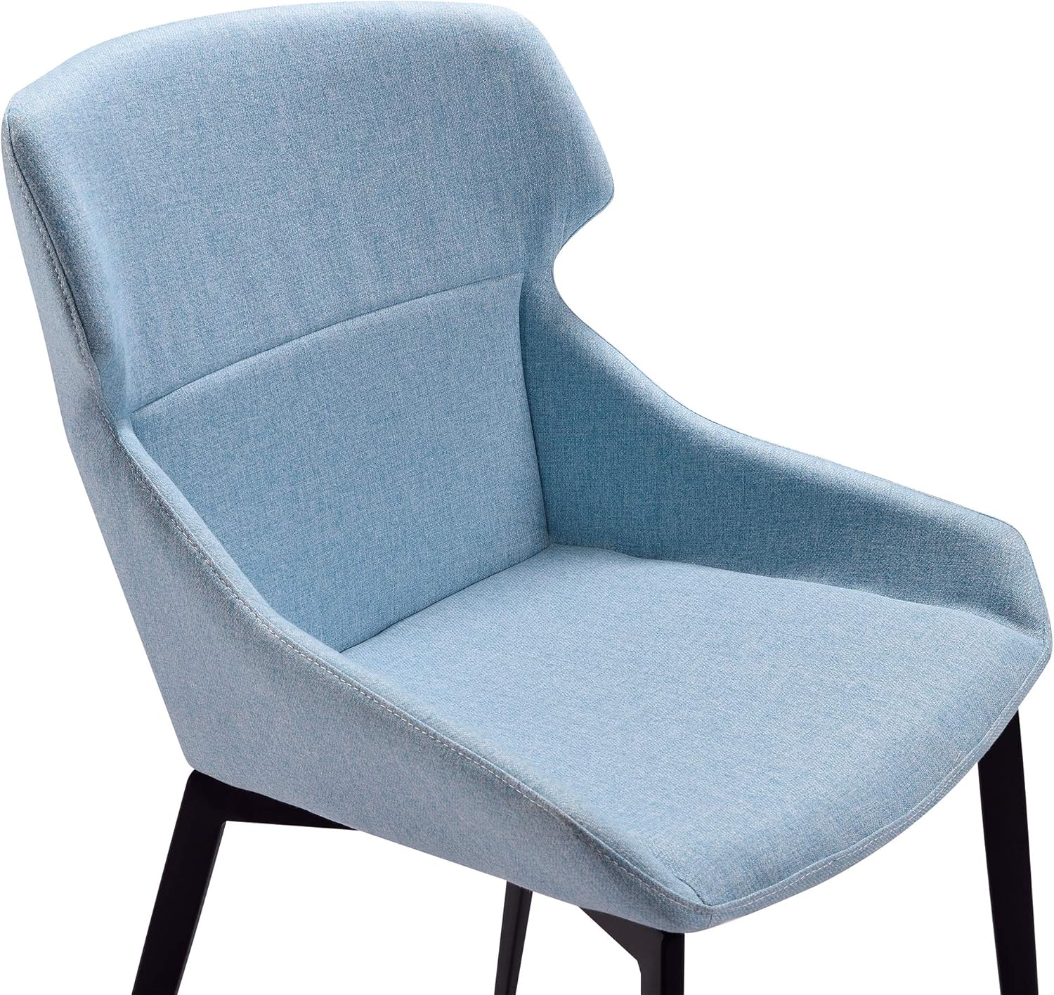The Armen Living Kenna modern side chair features a design that is certain to add beauty to any contemporary household. The Kenna’s sturdy steel frame includes a Matte Black Metal finish that is beautifully complemented by the chair’s stylish fabric upholstery. The Kenna’s tall back is uniquely shaped, offering excellent upper back support. The chair’s bucket seat is foam padded, assuring comfort and support while seated. The Kenna’s straight leg design includes floor protectors, assuring that the chair will not damage or slip on floors when moved. The sleek Kenna side chair is available in Grey or Blue fabric.