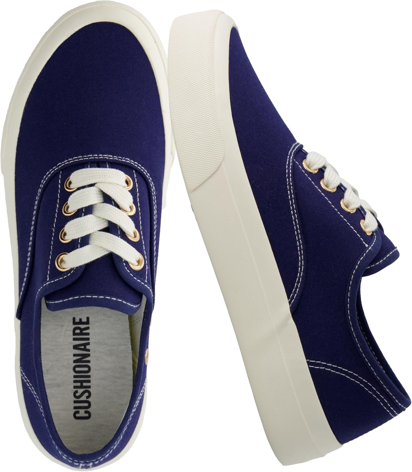 Step into timeless comfort with the CUSHIONAIRE Freshman womens canvas sneakers, designed for everyday versatility and effortless style. Featuring a cushioned insole and breathable upper, these sneakers combine comfort with a lightweight build, making them a reliable choice for walking, errands, or casual outings. These Freshman canvas shoes for women blend timeless styling with modern comfort, giving you versatile options for everyday wear. Designed as fashion sneakers with a clean, minimal look, they transition easily from casual outfits to more polished styles. The durable sole provides stability, creating non slip shoes you can rely on throughout your day. Whether youโre building a collection of womens shoes for work, weekends, or travel, these women's fashion sneakers deliver comfort without sacrificing style. Available in multiple stylish options including white sneakers for women, khaki, black, red, blush, blue, and white smooth finishes, these lace-up classics give you plenty of ways to match your look. Whether youโre after the crisp appeal of white canvas, the bold energy of red, or the soft elegance of blush, the Freshman sneaker delivers a color and texture for every mood. Perfect for pairing with jeans, dresses, or work outfits, these shoes bring durability and modern comfort together in a sleek design. The sturdy rubber sole offers traction and everyday reliability, while the simple silhouette keeps your look clean and versatile. From casual weekends to busy weekdays, the CUSHIONAIRE Freshman keeps you stylish, supported, and ready to go.