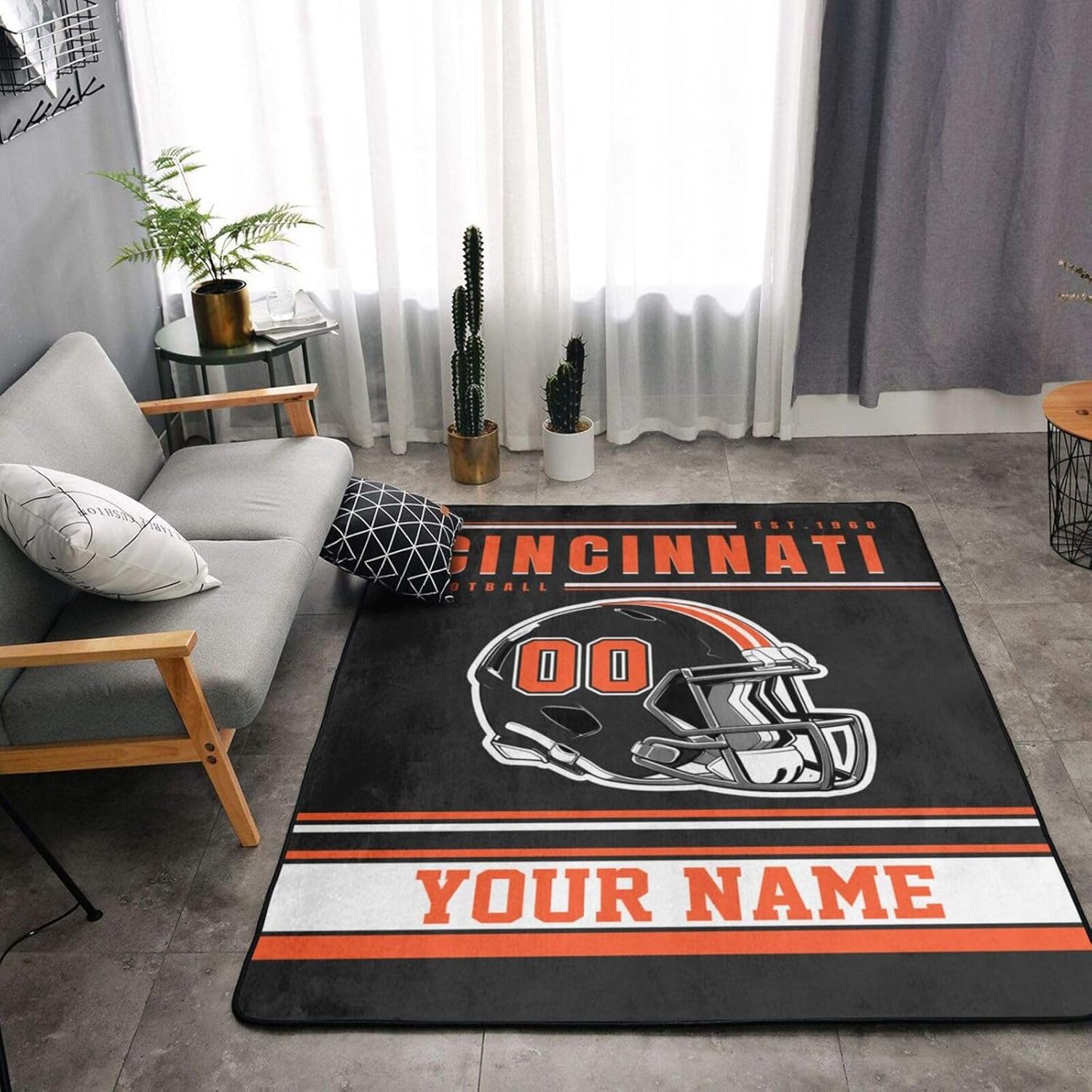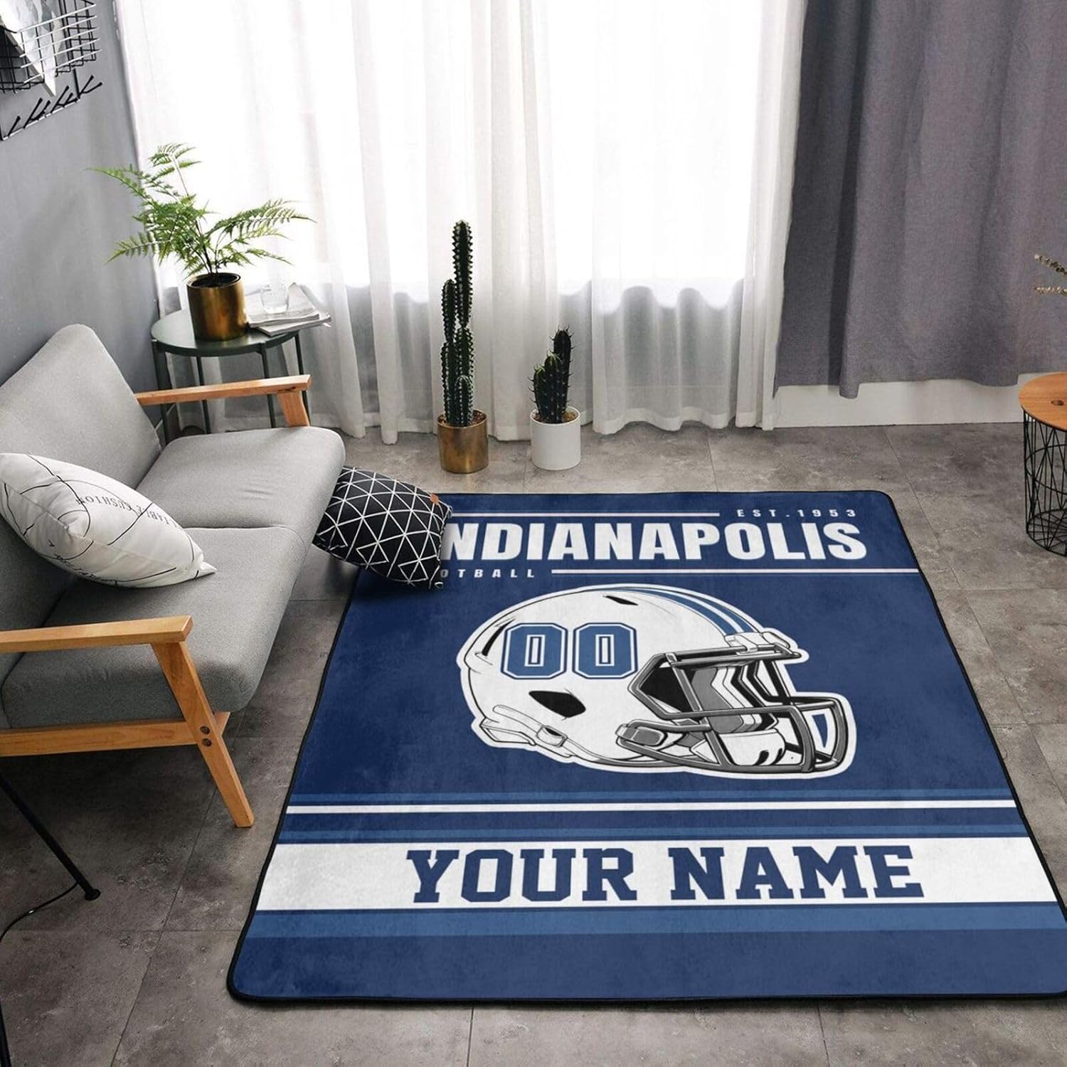How to customize?1. Select the floor mat style you like2. Click the "Customize Now" button3. Select the size of the floor mat you need4. Enter your name and number5. Add to cart and done!Product InformationPackage: 1 Floor MatSize: 36x24 in/91x60 cm, 60x39 in/150x100 cm, 63x48 in/160x120 cm, 72x48 in/182x120 cm, 80x58 in/208x148 cm.Printing Description: Full width one sided printing.Note: Due to compression packaging, the carpet may have some creases. Please lay it flat for about 5 hours and the creases will disappear. Please feel free to buy.The personalized rugs is made of flannel fabric, non-woven plastic bottom, thickness of 1cm. Easy to clean, maintain, shake off dirt, remove snow, mud, sand, grass, leaves and dust on shoes and boots, moderate thickness so that the door will not get stuck, durable, thick and comfortable feet, not easy to lose hair, anti-slip point plastic bottom, no damage to the floor.Custom rugs can be used as indoor reception carpet and kitchen carpet, floor mat, bedroom, laundry room, bathroom, living room, garage, office, home decoration, or given to your family and friends as a gift for new home and an opening gift for the office.Integrity Service: Our service aim is to provide customers with a better shopping experience. If you need help or have any questions, please contact us. Thank you for visiting and happy shopping!
