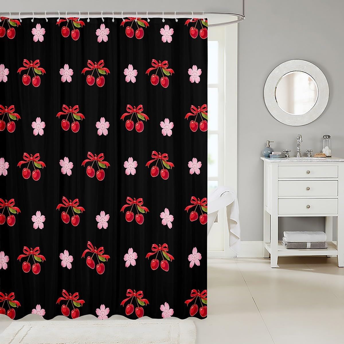 Welcome to our storeOur shower curtain, good decorate your bathroom, a fashionable and beautiful item to your friends or relatives; the shower curtain lets you enjoy a comfortable every time you bathFeatures:Designer Artwork: Chic personalized design shower curtain; not an ordinary shower curtain you can find anywhere; unique; genuine; fun Material: Made of polyester fabric with weight at the bottom; waterproofEach curtain contains 12 C shaped hooks and is easy to install; three generous size is sure to fit most bathtubs and shower stalls; machine washable and dries fast Range of size:72" x 72"72"x 78"72"x 84"Notice:1 Machine wash , hand wash or wipe with a damp cloth 2 There will be a slight difference in product sizes due to manual measurement