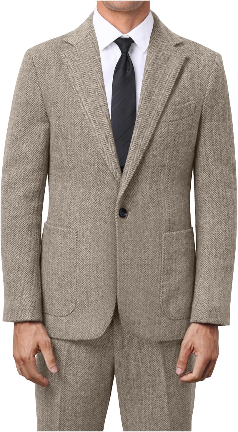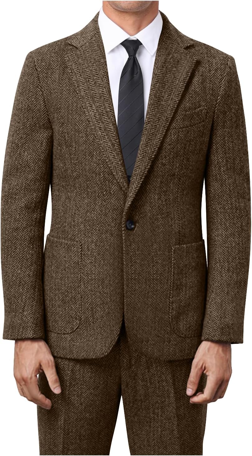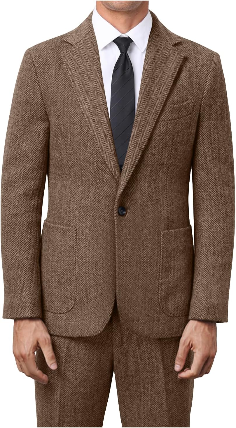 2 Pieces Herringbone Tweed Suits for Men: Herringbone Tweed Blazer*1 Herringbone Tweed Pants*1