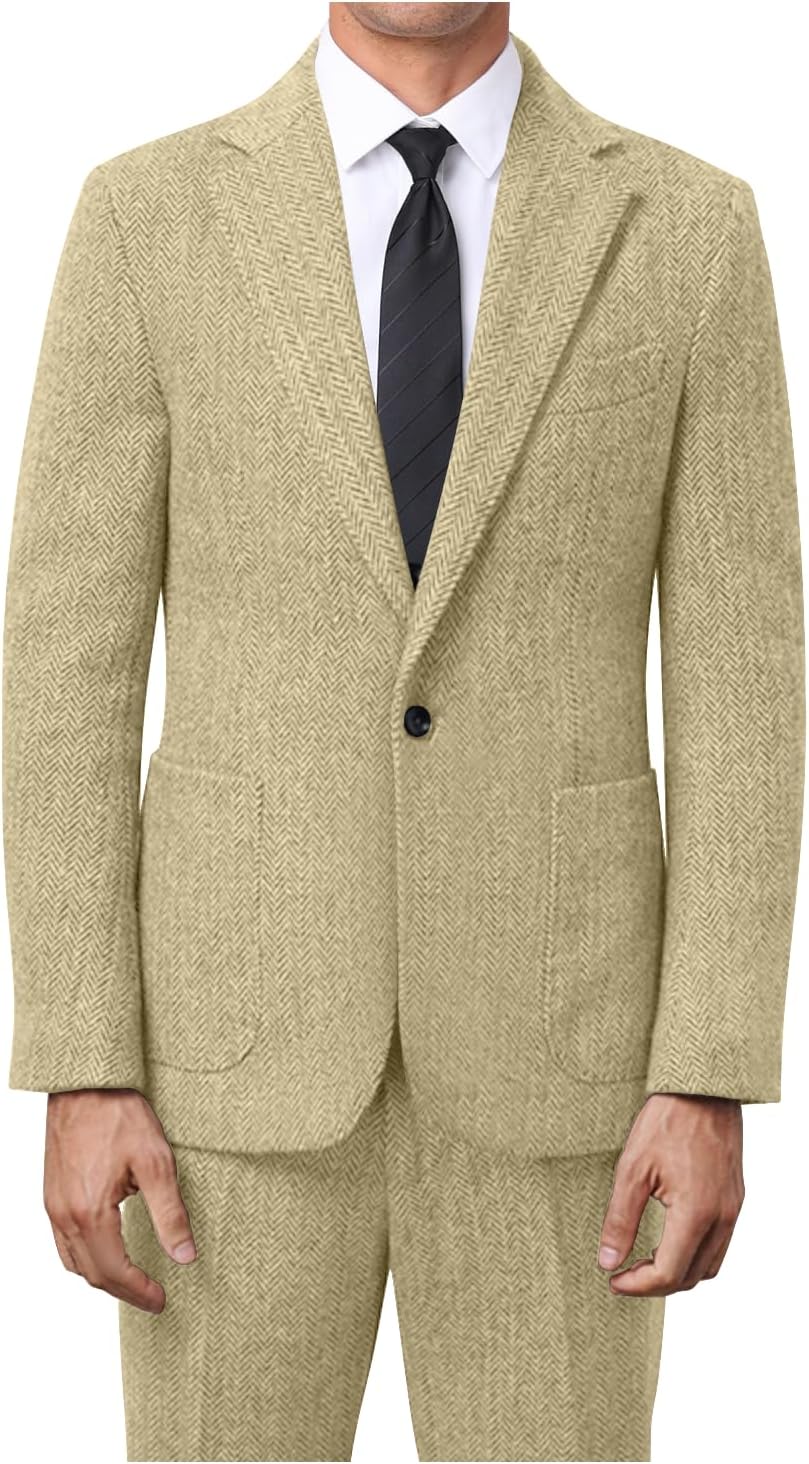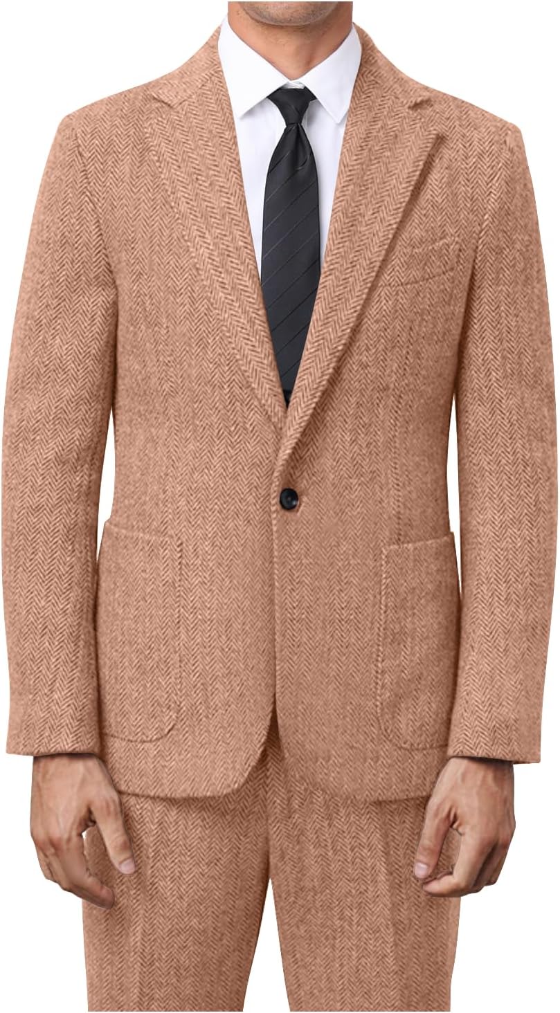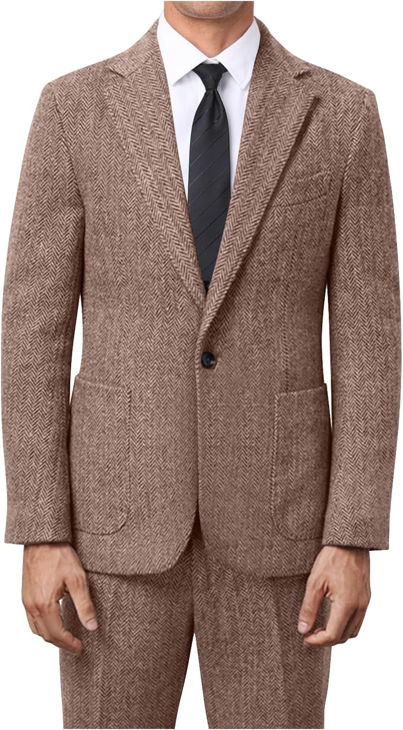 2 Pieces Herringbone Tweed Suits for Men: Herringbone Tweed Blazer*1 Herringbone Tweed Pants*1