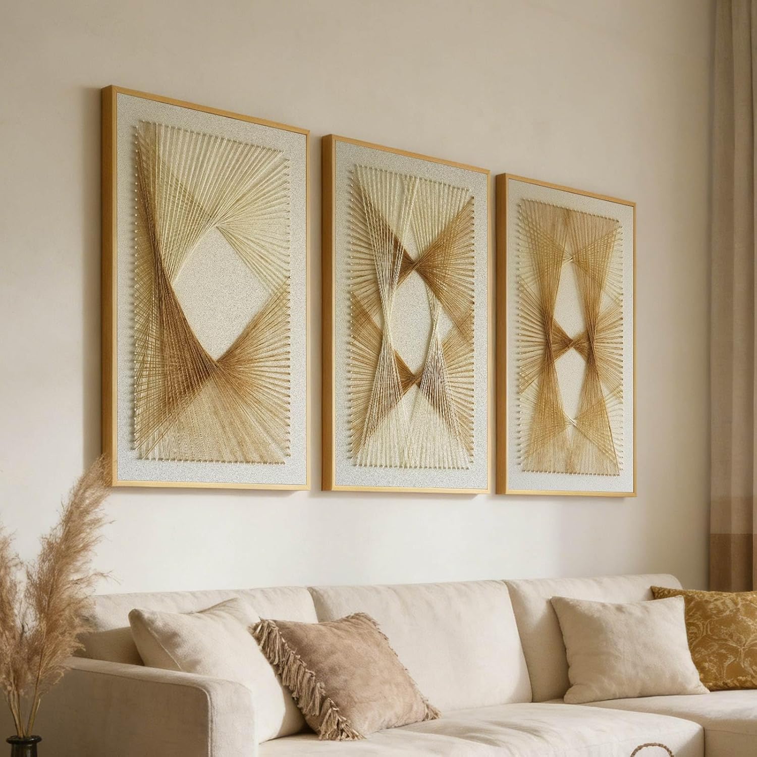 Elevate Your Space with Thalasse 3D Abstract Eye Artistry The Thalasse A601-0 is a masterclass in texture and symbolism. Moving beyond traditional painting, this piece uses the tension of linen strings and the grit of natural sandstone to form a "Vision" that you can see and feel. It’s designed for those who appreciate the intersection of industrial texture and hand-crafted art. Specifications: Design: Multi-dimensional Abstract Human Eye Q: Is the installation hardware included? A: Yes, each piece comes with 4 pre-installed heavy-duty hooks and a full installation kit including positioning paper, a level, gloves, and two types of nails for different wall types. Q: Is the texture prone to dust? A: The matte sandstone and hemp materials are durable. We recommend a light dusting with a soft brush or compressed air to maintain the intricate string patterns. Frame made of FSC-Certified wood.