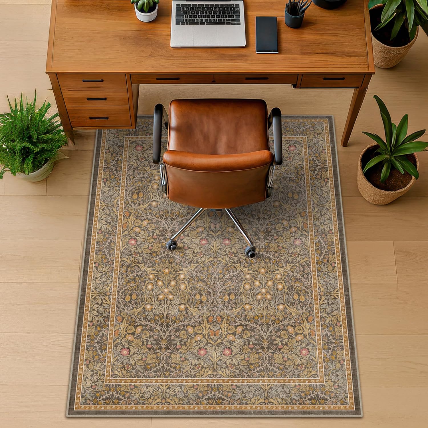 Upgrade your office and home space with the premium JTJ office chair mat! This rug naturally blends the style of 19th-century artwork with floral patterns, crafted from high-quality printed fabric. The 0.25-inch low-pile design offers an ultra-soft feel, and the classic size makes it perfect for office use. It is compatible with various flooring types and suitable for multiple spaces. Whether in a modern minimalist or vintage atmosphere, it enhances the room's depth and visual impact, becoming an undeniable highlight of your home decor. Durable and long-lasting, it's the perfect choice for both your home and office! Main features: Premium Quality: -High-quality printed fabric with a blend of the style of 19th-century artwork and botanical patterns -Ultra soft 0.25-inch low pile carpet -Suitable for various flooring types (hardwood, vinyl, stone, tiles, concrete) -Can be used in offices, entryways, kitchens, and bathrooms Anti-Slip, Denoise & Floor Protection: -Non-slip rubber backing keeps the mat securely in place -Protects floors from scratches caused by chair wheels -Reduces chair rolling noise, ensuring a quiet environment Easy to Clean & Maintain: -Easy daily cleaning (vacuum or spot clean with a damp cloth) -Machine washable with cold water, air dry or low-heat dry A variety of Sizes and Colors: -With multiple choices, there's always one that suits your style! Children and Pet-Friendly: -Prevents pet hair and stains from sticking, making cleaning simple -Protects pets' paws and reduces floor scratches -Durable and resistant to wear, even with frequent pet use Size Options: 3'x4'/36''x48'' 4'x5'/48''x60'' Color Options: Dark Green Gold Brown Dark Blue