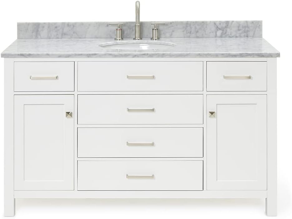 | Additional Features | Italian Carrara marble countertop, solid hardwood construction, soft closing doors & drawers, dovetail construction, adjustable hinges, predrilled countertop for 3-hole faucet-8" inch widespread, open storage space |