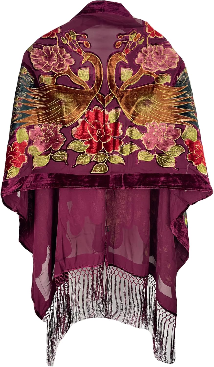 Purely handmade.The beads glitter in the light Scarf has 3D Clear pattern.The patterns are vivid The scarf soft and comfortable.The colors and beading and weight of it are just lovely Don't even think about passing this one up,it is so colorful,so gorgeous,you will really love it Were this to a Spring wedding and was just perfect! A gorgeous scarf that will really add to anyone's collection of accessories.It is soft and elegant It is a great gift to your friends,and your family The size 67*20 inch,it can be a Scarf or Pashmina.It can be used all year round You can use it on any occasion,working,office,travel,shopping,It makes you look sexy Handwash only! Do not machine washable