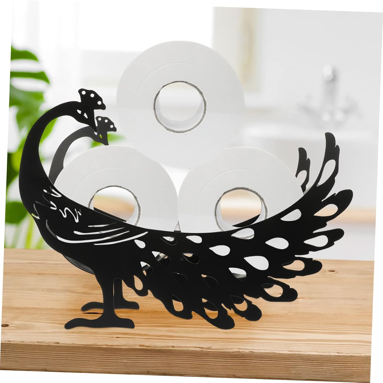 Package Include 1 x Peacock Toilet Paper holder Characteristics -Material:Iron Stand Tissue Holder - Size: 38.00X27.00X11.50cm/14.93X10.61X4.52in toilet paper stand - Color: Black Roll Paper Stand - The space-saving design is also suitable for bathroom, toilet, kitchen, living room, hotel and so on. Kitchen Roll Paper Basket - The roll paper stand is manufactured with and iron material to ensure its practicality and service life Countertop Roll Paper Holder. - Made of good workmanship, the paper holder has a smooth surface with no burr, for you to use Animal Roll Paper Holder. - You will have a pleasant using experience, and the toilet paper rack is easy to store and place, also brings you of convenience Animal Shaped Paper Stand. - The peacock shaped appearance design look chic and with good decorative effect, can be used on the wall. Metal Paper Towel HolderGoods InformationCute Animal Toilet Paper Holder The standing toilet paper holder is made of iron material with exquisite workmanship, sturdy and for home use.Animal Shaped Paper Stand Not only useful for daily use, but also as a decoration at home.Metal Tissue Storage Holder It is to replace the paper towel, and the paper towel is well collected