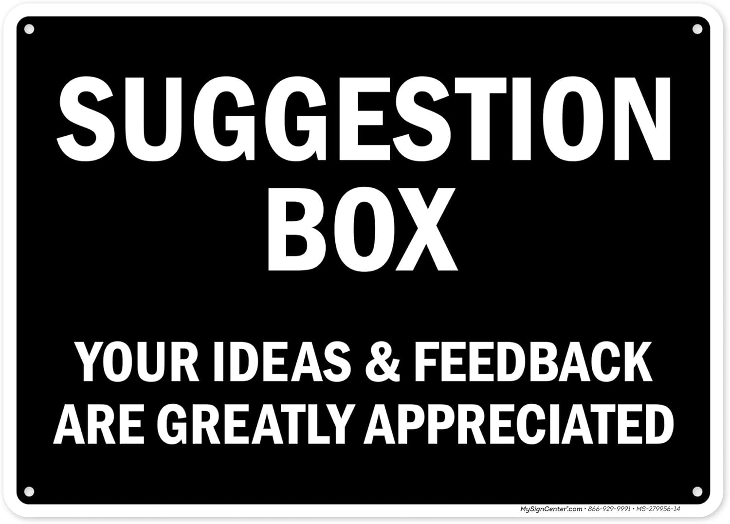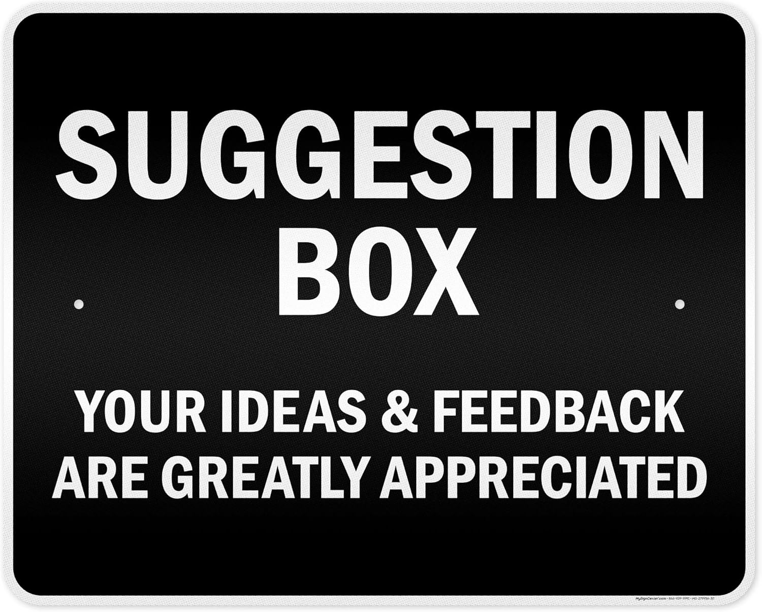 Suggestion Box Your Ideas And Feedback Are Greatly Appreciated Sign, 18x24 Inches, 55 mil thick HDPS (high density polystyrene), Made in USA by My Sign Center