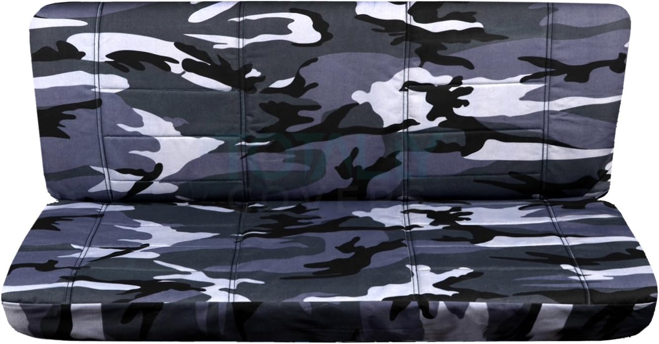 A set of rear, 60/40 split bench, wetland camo truck seat covers for a 2001 to 2003 Ford F-150 SuperCrew (Crew Cab) with no headrests and no center armrest in the back. Be sure to visit our storefront ("Totally Covers") where you can find the largest selection of seat covers, to satisfy even the most demanding of tastes. If you can't find what you are looking for, please contact us ("Totally Covers") We can make seat covers for ANY car, truck, van, RV or SUV in a variety of 145 colors and prints, and even add your name/text and logo/design on them!