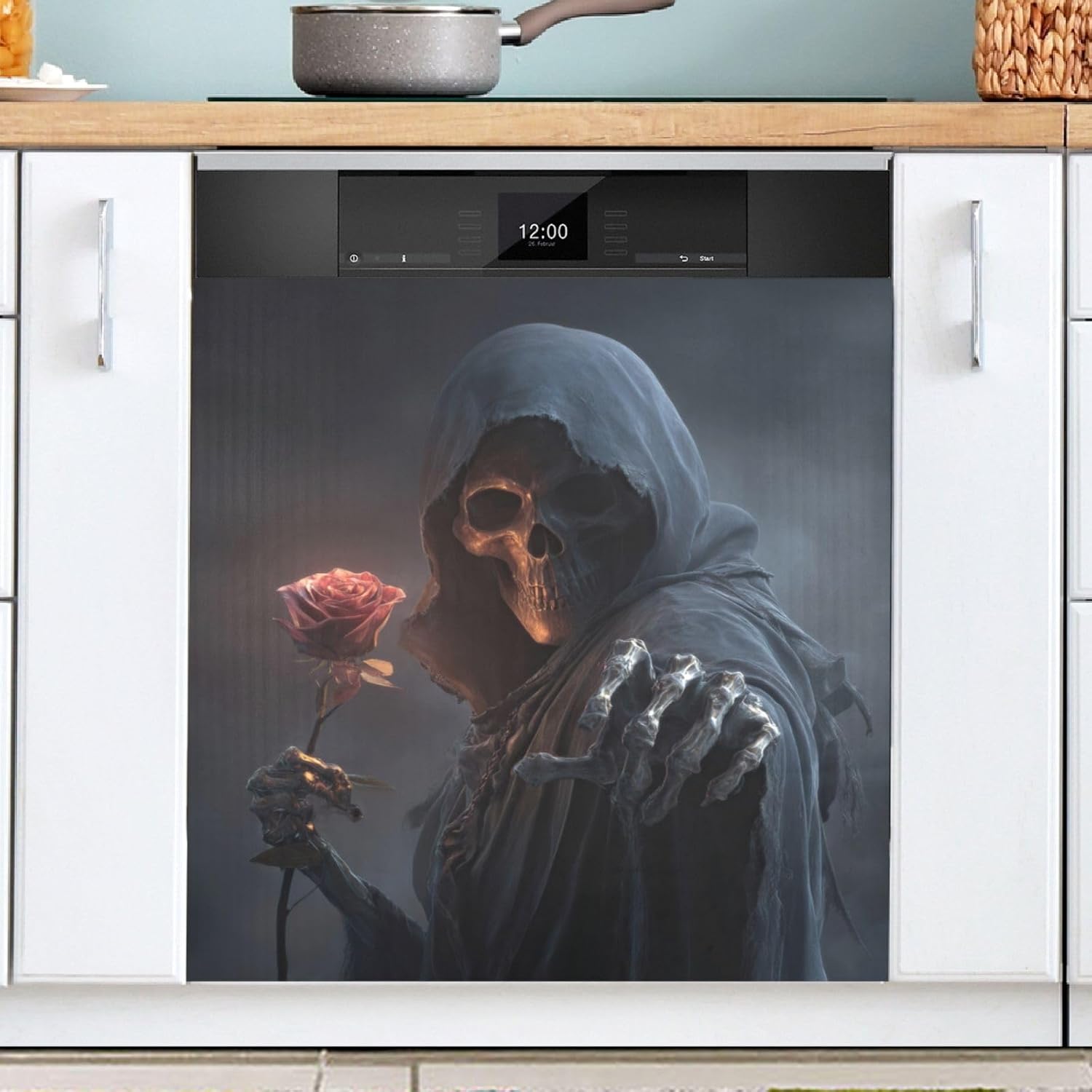 Emelivor Dishwasher Magnet Cover will transform your drab kitchen and it will be the perfect addition to your kitchen! Refresh your kitchen! SPECIFICATION: SIZE: 23(W) x 26(H) IN MATERIAL: PVC Magnetic Soft Sticker PACKAGE INCLUDE: 1 x Magnetic Dishwasher Cover FEATURE: * Standard size fits most dishwashers, refrigerators, etc. If it is not suitable, you can be freely cut to suitable size. * Matte coated surface, heat resistant, stain resistant, scratch resistant, not easy to fade, durable. * Easy to install and remove, peel it and stick it, no sticky residue, no marks. * Easily hide scratches, dents and unsightly marks , and protecting the enclosure of the appliance. * With beautiful patterns, it perfectly complements your home decor and refreshes your kitchen. APPLOCATION: Perfect for kitchen dishwashers, kitchen countertops, kitchen sink cabinets, microwaves, cabinets, refrigerators, washers, dryers and more. Suitable for sticking to metal surfaces (such as iron) or magnetic objects surfaces. GIFT: Beautiful dishwasher cover is a great home decoration, ideal as a housewarming gift, christmas gift, thanksgiving gift, halloween gift, birthday gift for your family, friends, lover and yourself. EASY TO CLEAN: Simply wipe with a damp cloth or hand wash in cold soapy water and air dry. SERVE: We are committed to providing high-quality products to meet the needs of our customers. If you have any questions, please feel free to contact us, we are always ready to help you!